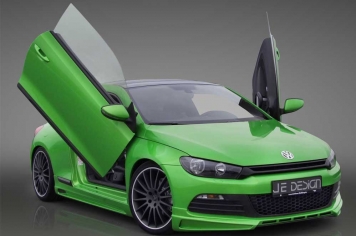 JE Design Volkswagen Scirocco 2.0 TDI ieguvis vērā ņemamus virsbūves apdares elementus, kuru vidū spilgtākais ir Lamborghini parauga atvāžamās durvis. Vēl komplektā – divi izpūtēja stobri aizmugurē pa vidu, jauna parauga spoileri un vēl šis tas, kas labāk aplūkojams fotogalerijā.