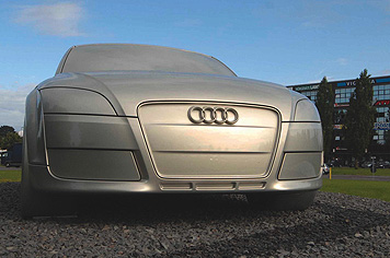 Tuvojoties Audi simtgadei, kompānijas vadība sarūpējusi 10 tonnas smagu skulptūru, kas novietota pie uzņēmuma galvenās mītnes Ingolštatē, Vācijā. Oficiālās svinības notiks 16.jūlijā, bet skulptūra tur nogādāta jau savlaicīgi.
