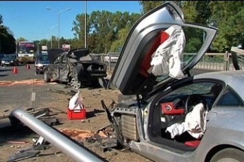 Abu spēkratu īpašnieki kaut ko savā starpā nebija sadalījuši un nolēma iet „līdz galam” aizmirstot par citiem ceļu satiksmes dalībniekiem. Zaudēja Mercedes SLR īpašnieks, iznīcinot savu un vēl četrus auto. Vairāki cilvēki, to vidū divi bērni ar dažādas pakāpes ievainojumiem tika nogādāti slimnīcā.