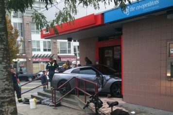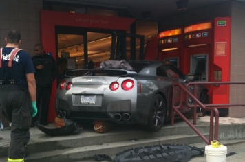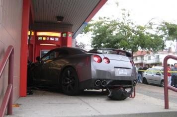 Pagaidām neskaidru iemeslu dēļ kāds Nissan GT-R īpašnieks nespēja novaldīt sava spēkrata stūri un ietriecās bankas nodaļas ēkā Vankūverā, Kanādā. Incidentā cietusi VanCity Credit Union banka un tās bankomāti.