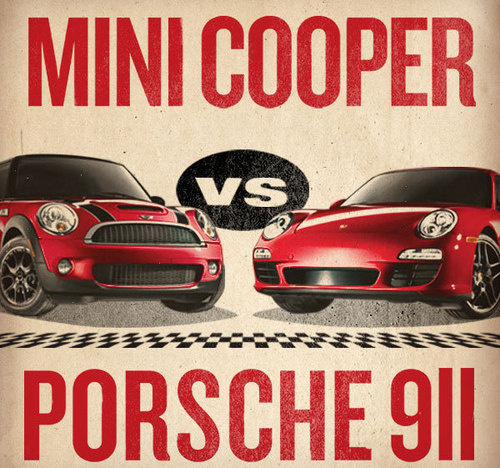 Mini Cooper S pret Porsche 911 Carrera S