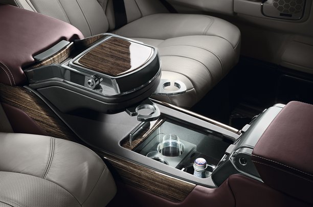 Range Rover dizaineri šai luksusa modifikācijai piedāvā atšķirīgu interjera risinājumu – divus individuālos aizmugures sēdekļus ar visuskonsoli, kurā atrodams ledusskapis un datora galdiņš. Priekšējo sēdekļu galvas balsti, savukārt, ir kā radīti Apple iPad ievietošanai.