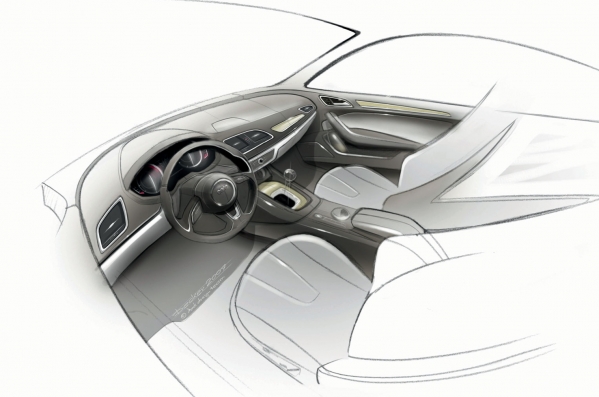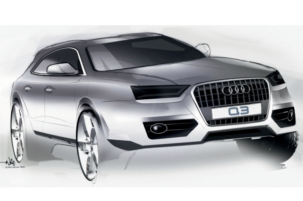 Audi laiduši klajā pirmos, „oficiālos” jaunā Q3 krosovera zīmējumus, lai gan auto pasaules pirmizrāde plānota jau šomēnes, Šanhajas auto izstādē Ķīnā.