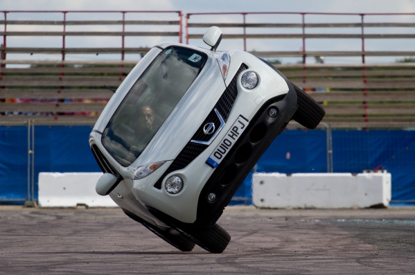 Savukārt otrs rekords tiks uzstādīts ar Nissan Juke krosoveru, kas mēģinās uzbraukt tajā pašā Gudvudas kalnā uz diviem riteņiem.
