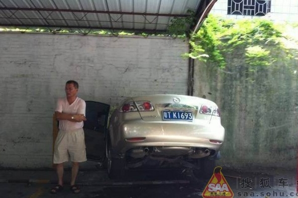 Sieviete ar Mazda6 iztriecas cauri sienai