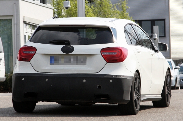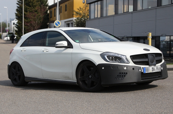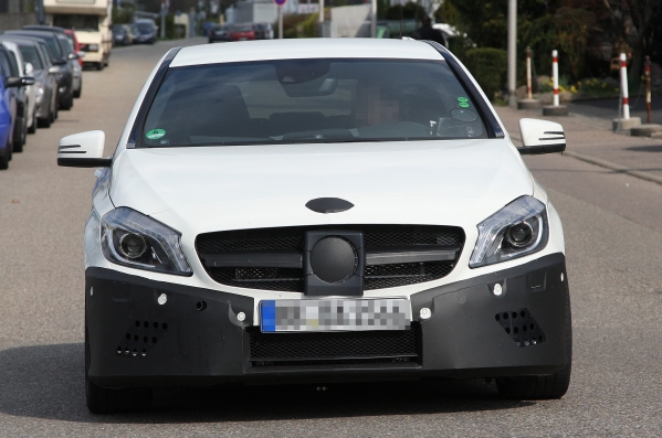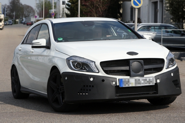 Šis ir Mercedes-Benz A25 AMG, pati „karstākā” jaunā A-Klases mazauto modifikācija, kuru no standarta modeļa varēs atšķirt pēc lielākām gaisa ieplūdes atverēm un citiem vizuāliem elementiem, kurus ražotājs šobrīd vēl cenšas maskēt.