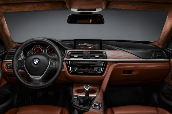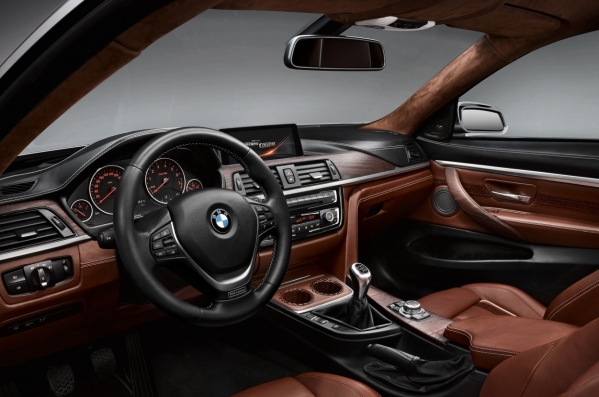 Par auto dizainu jāpateicas Adrianam van Hoidinkam un Karimam Habibam. Kamēr no ārpuses lielu pārsteigumu 4.sērijas izskatā nav, interjers gan ir diezgan negaidīts – BMW fanu aprindās iecienīto, tradicionālo melno griestu apšuvuma vietā ir brūna alkantaras apdare... Interesanti!