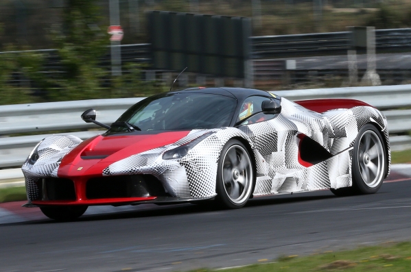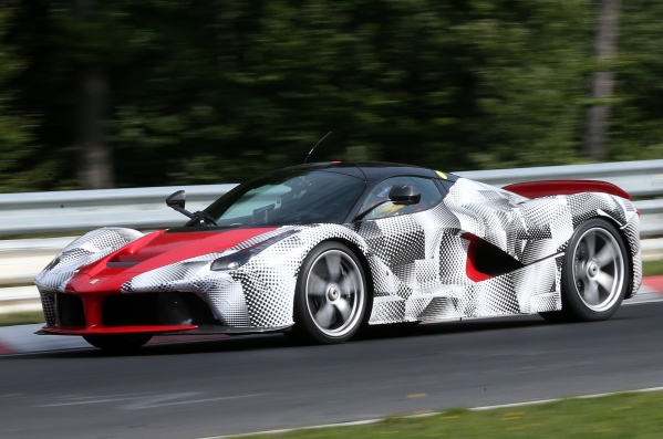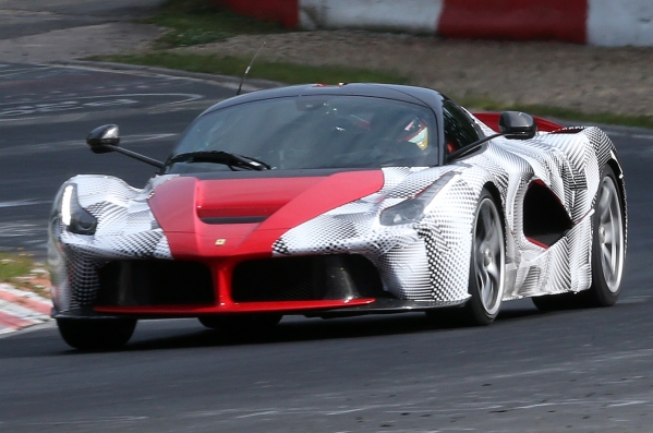 Šie spiegu foto to daļēji apliecina – LaFerrari uz testiem Nirburgringas trasē ieradies ar maskēšanās tērpu, pusgadu pēc oficiālās prezentācijas.
