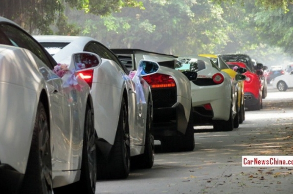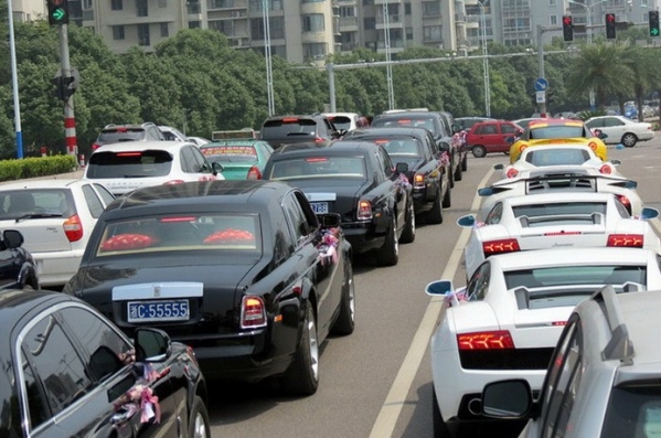 apliecina šis kāzu viesu konvojs Venžou pilsētā, ko ievērojis acīgais carnewschina.com fotogrāfs.