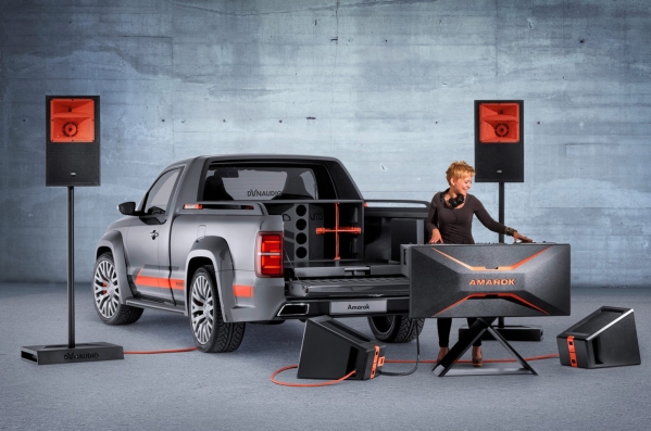 Šis ir Amarok Power konceptauto, kas līdzās daudziem citiem ekstravagantiem projektiem ar VW logo būs apskatāms šīs markas fanu ikgadējā saietā Verterzē. Turklāt – ne vien apskatāms, bet galvenokārt – saklausāms, jo tas aprīkots ar visu dīdžeja darbam nepieciešamo, kā arī iespaidīgu, 5000 W audiosistēmu.
