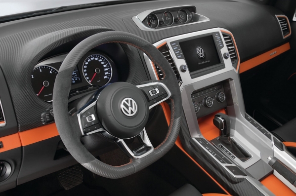Tomēr arī bez šīs skaņas sistēmas konkrētais Amarok eksemplārs ir pieminēšanas vērts. Tam ir Dynamic Gray metālisks krāsojums, Gunmetal krāsas spoguļu korpusi, 22 collu diski ar 295/35 izmēra riepām, kā arī oranžas krāsas bremžu suporti, biksenona lukturi ar hromētiem akcentiem un hromētas izpūtēja curules.