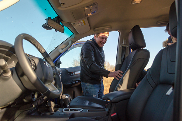 Hilux ir ļoti grūti salīdzināt ar citiem auto, jo, atšķirībā no apvidus auto ar zemprofila riepām, Hilux spēj doties it visur. Salonā vieta pietika gan priekšā, gan aizmugurē, tomēr gara auguma cilvēkiem varētu būt nedaudz par šauru. Vērtējot ergonomiku, slēdžu un pogu izvietojums, viss uzreiz bija saprotams un nebija nepieciešamība speciāli meklēt kādu funkciju. Ar Hilux var doties arī uz balli, ne tikai uz mežu!