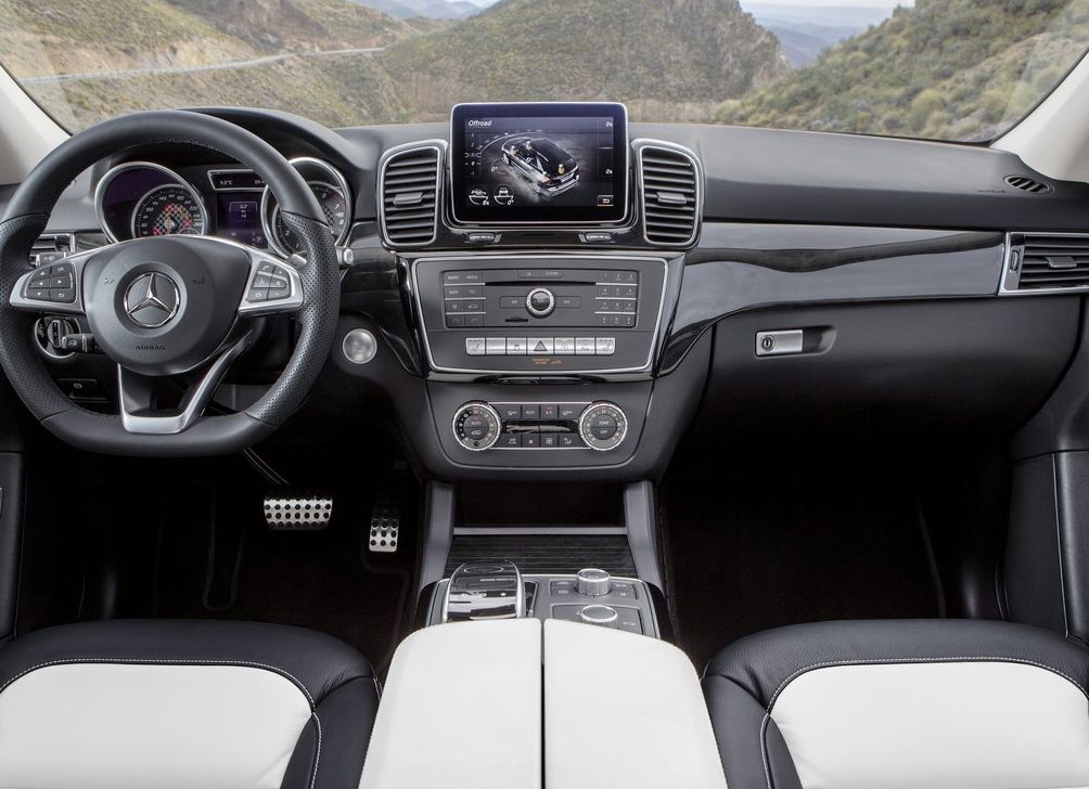 Priekšējā panela centrā dominē infosistēmas ekrāns, kurā var sekot līdzi dažādām auto funkcijām, tās pielāgojot atbilstoši katra braucēja vēlmēm. Ja kaut kas ir neskaidrs, var izmantot opciju sameklēt atbilstošās funkcijas skaidrojumu infosistēmā iekļautajā GLE rokasgrāmatā. Pateicoties viduskonsolē novietotajiem slēdžiem, orientēties ekrana izvēlnēs ir parocīgi un intuitīvi.