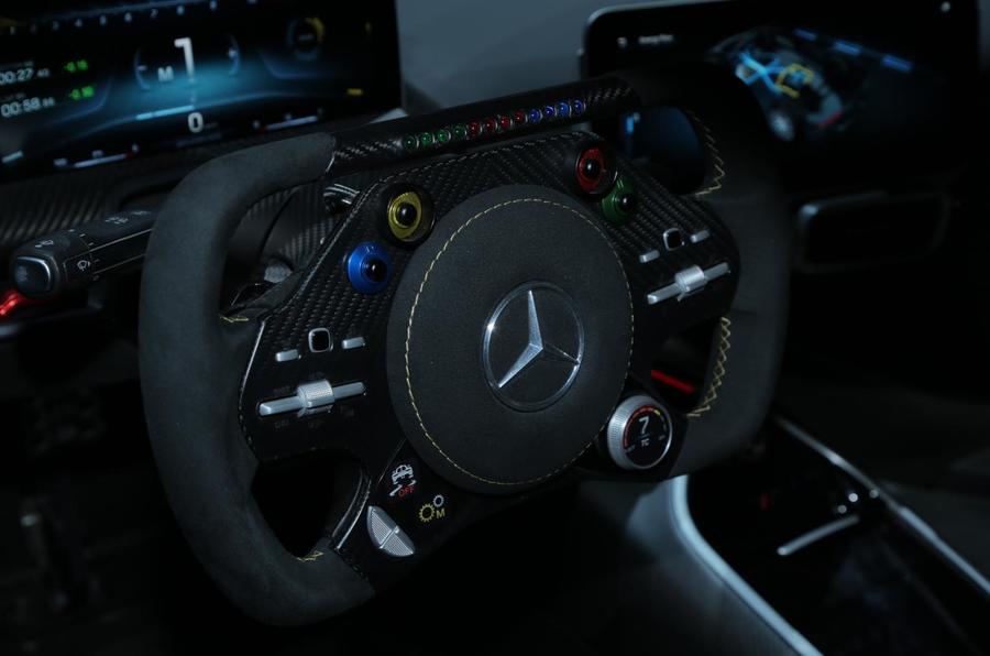 Viss pārējais ir tehniski jautājumi – spēja nobraukt pārdesmit kilometrus tikai ar elektrību vien, jaudas vektorēšanas sistēma, kā arī litija jonu bateriju paka, kas izmanto to pašu konfigurāciju un dzesēšanas sistēmu, kāda ir Mercedes AMG formulā. Jauda tiek padota aizmugurējiem riteņiem ar pilnīgi jaunas astoņpakāpju manuālās pārnesumkārbas palīdzību – tā izstrādāta īpaši Project One.