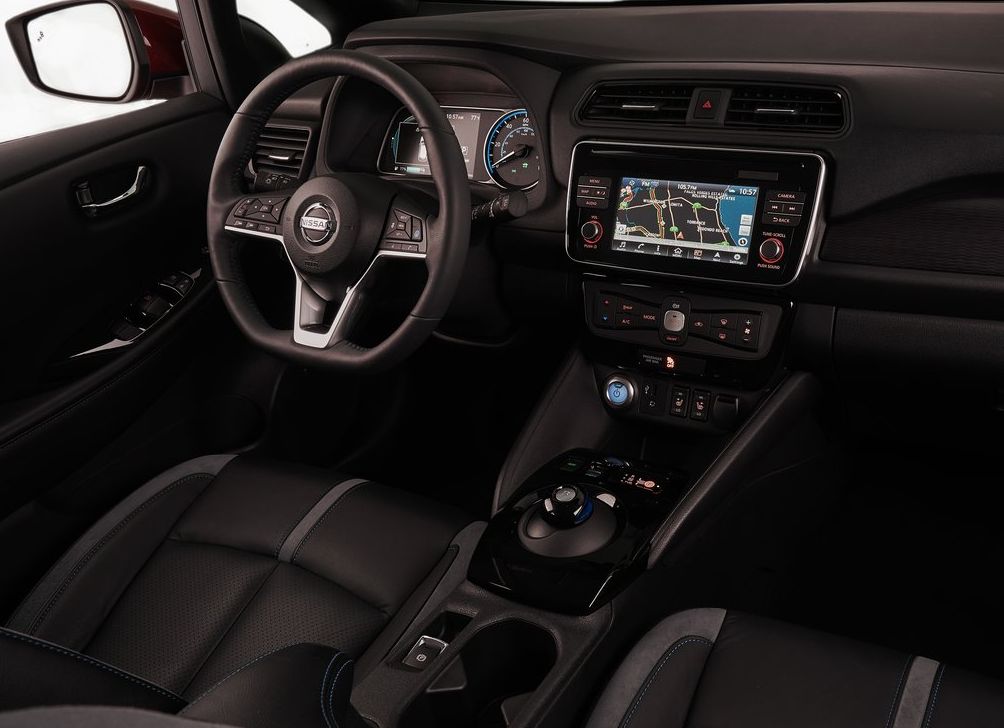 Jaunā Nissan Leaf interjerā ir daudz iezīmju no Micra. Stūre un atsevišķi priekšējā paneļa elementi jau šķiet pazīstami, taču Leaf ir pilnībā digitāls mērinstrumentu panelis un infosistēma ar 7 collu skārienekrānu. Tas vēl nav viss – jaunajā Leaf ir automatizētās vadības sistēma ProPilot, kas ar adaptīvās kruīzkontroles un joslu noturēšanas asistenta palīdzību ļauj tam pārvietoties (turēties satiksmes plūsmā un nobremzēt) “autopilotā”, kā arī automātiskā parkošanās sistēma ProPilot Park, kas ir pirmā šāda veida tehnoloģija Nissan vēsturē.