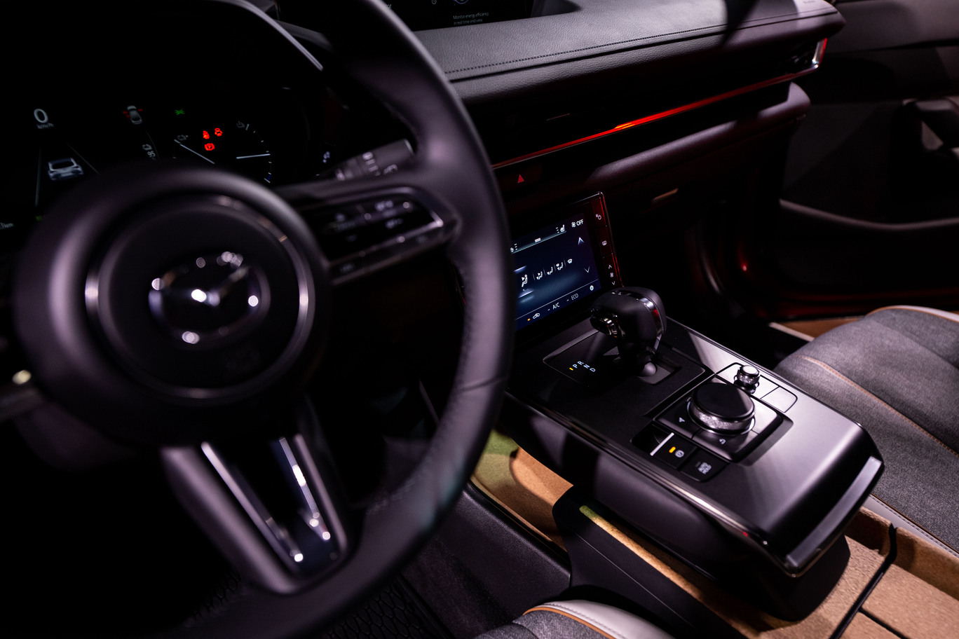 MX-30 iespējams sakomplektēt ar vienu no divām audiosistēmām – Mazda Harmonic Accoustics vai papildaprīkojumā pieejamo divpadsmit skaļruņu Bose Premium audiosistēmu.