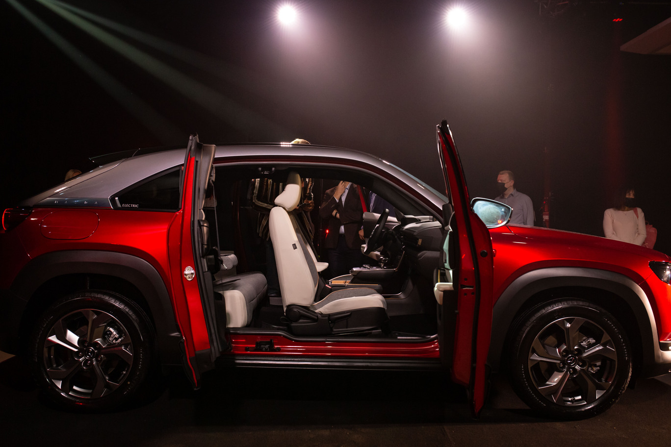 MX-30 aprīkots ar brīvā stila durvīm, kam nav vidējā statņa, bet ir speciāli izveidotas durvju viras. Priekšējās durvis iespējams atvērt uz priekšu pat 82 grādu leņķī, bet aizmugurējās – 80 grādu leņķī uz aizmuguri.