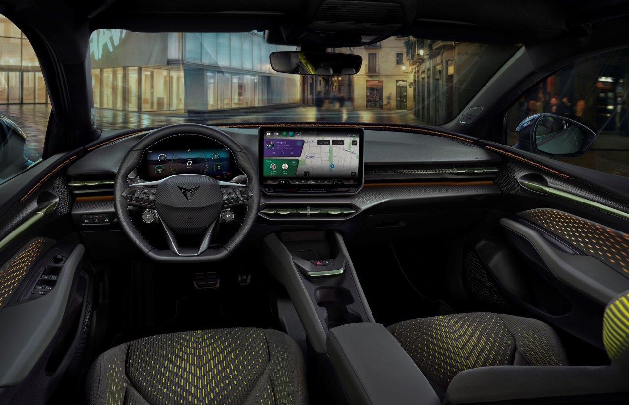 Salona aprīkojumā ietilpst 12,9 collu informācijas un izklaides sistēmas ekrāns ar jaunu Android™ operētājsistēmu un 10,25 collu digitālais instrumentu panelis. Atjauninātā stūre apvieno fiziskās pogas, braukšanas režīmu izvēli un sportiskas pārnesumu pārslēgšanas lāpstiņas.