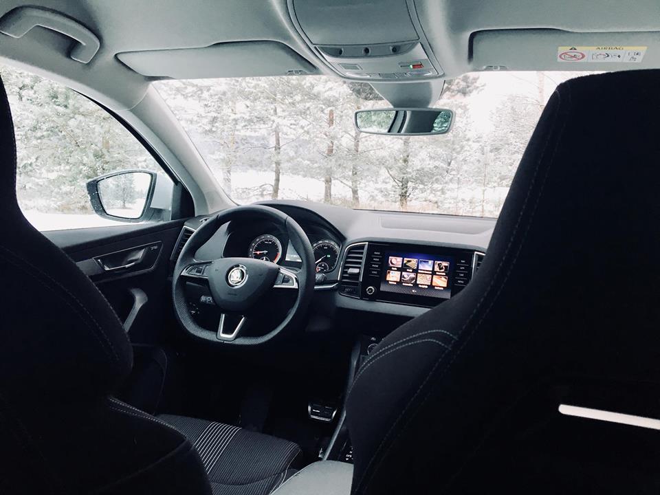 Pozitīvās sajūtas vēl vairāk nostiprina interjera atmosfēra – trokšņu izolācija, apdares paneļu montāžas kvalitāte un izmantotie materiāli ir augstākā līmenī, nekā dažiem citiem auto šajā segmentā. Mūsu testa auto bija arī sporta sēdekļi ar labu sānu atbalstu, kas teju vien rosina pārbaudīt Karoq vadāmības spēju “komforta zonas” robežas.